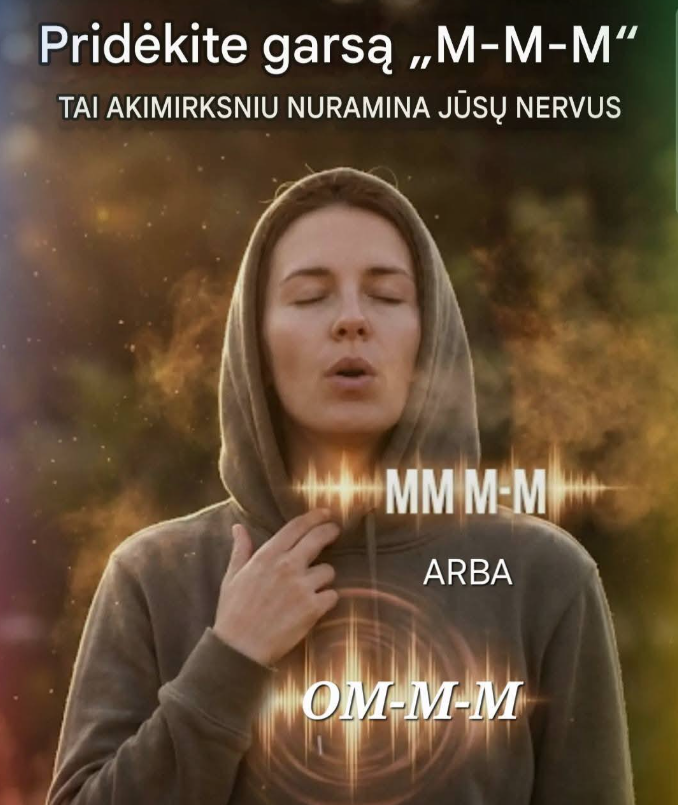 Norėdami sustiprinti efektą, tyliai dainuokite „M-M-M-M“ arba „O-M-M-M“. Jūsų balso rezonansas masažuoja liauką iš vidaus.